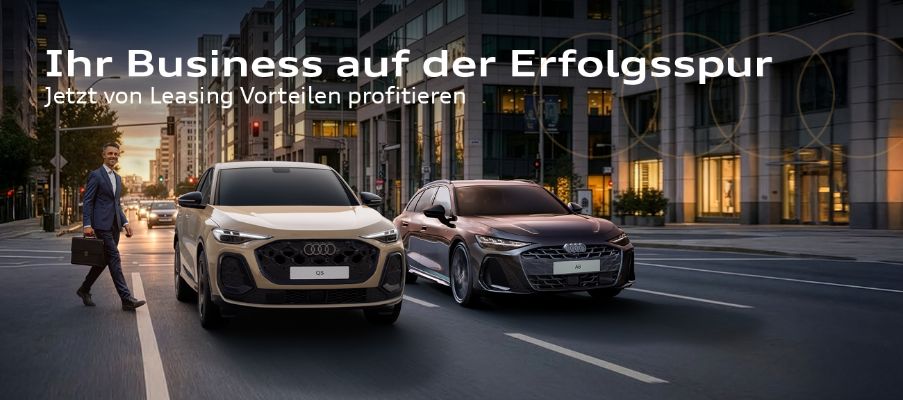 1) Laufzeit 48 Monate; Jährliche Fahrleistung 10.000 km; Ein Angebot der Audi Leasing für Businesskunden1, Zweigniederlassung der Volkswagen Leasing GmbH, Gifhorner Straße 57, 38112 Braunschweig. Zzgl. Überführungskosten und MwSt. Bonität vorausgesetzt. Gültig bis zum 31.03.2026. Verlängerung vorbehalten. Aktion nur gültig bei Zulassung bis 31.12.2026. Nur bei teilnehmenden Audi Partnern. Etwaige Rabatte bzw. Prämien sind im Angebot bereits berücksichtigt. Abgebildete Sonderausstattungen sind im Angebot nicht unbedingt berücksichtigt. Alle Angaben basieren auf den Merkmalen des deutschen Marktes.